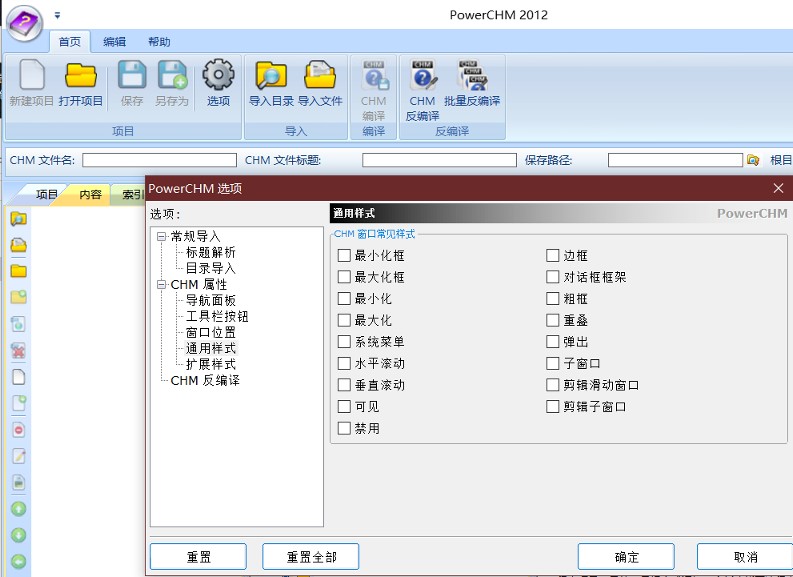 这里我推荐使用《PowerCHM》这款软件,打开此软件选项就可以自由编辑所需的CHM的窗口样式了