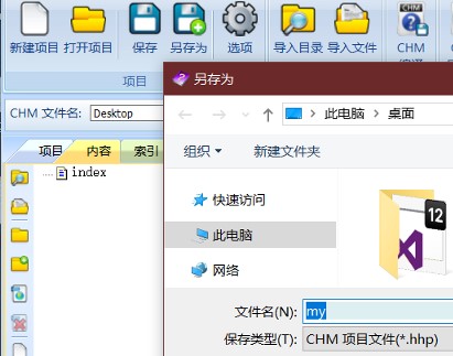 内容就随便添加个文件,然后直接对项目另存为,就能够生成chm所需的原生hhp配置了